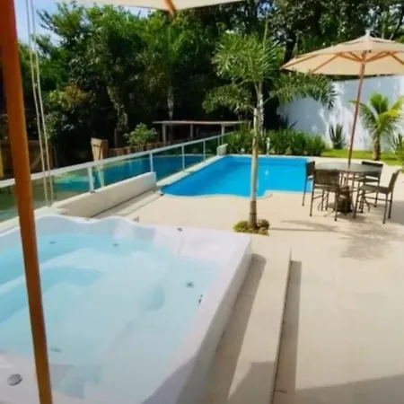 Los huéspedes pueden disfrutar del jardín del hotel Chalé Pontilhão Juatuba, acompañado de barbacoa.